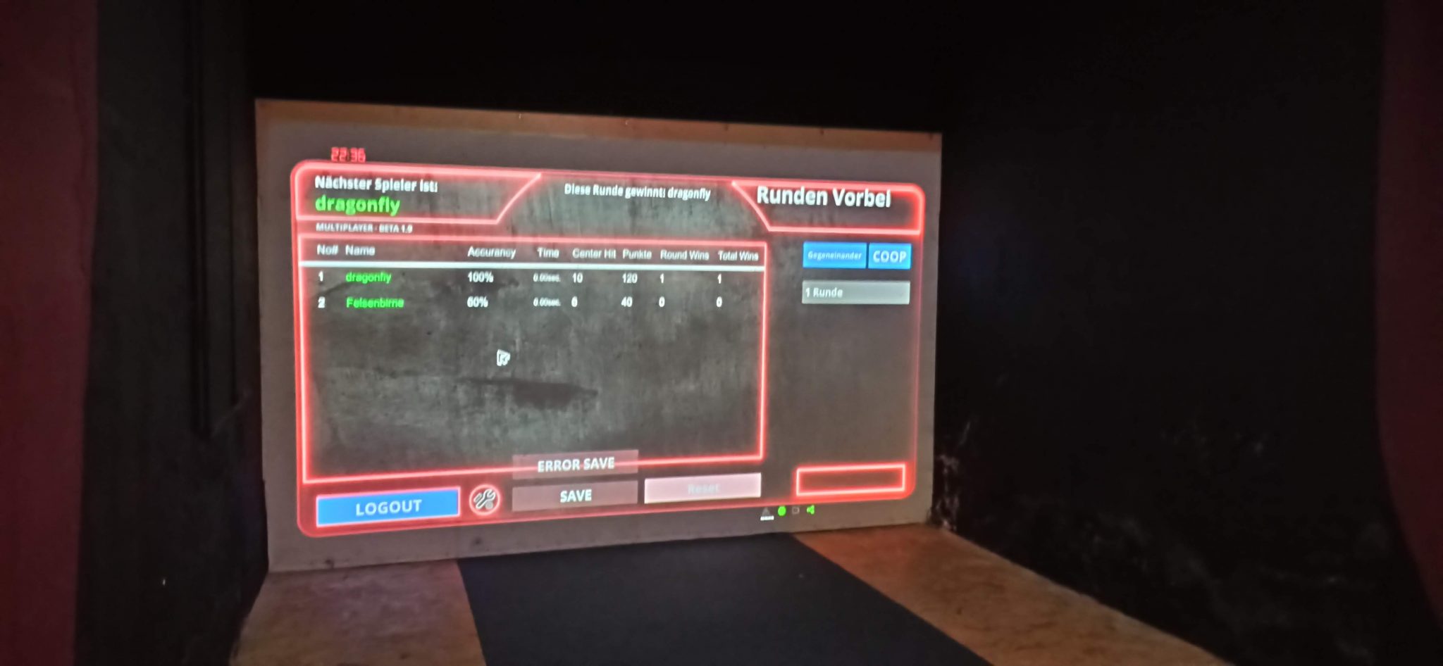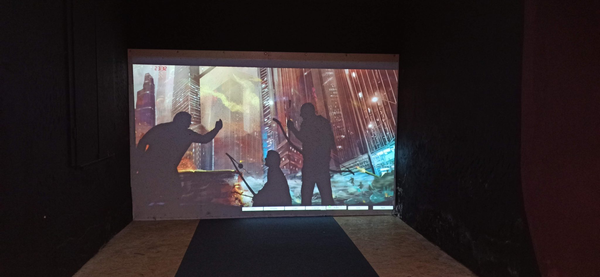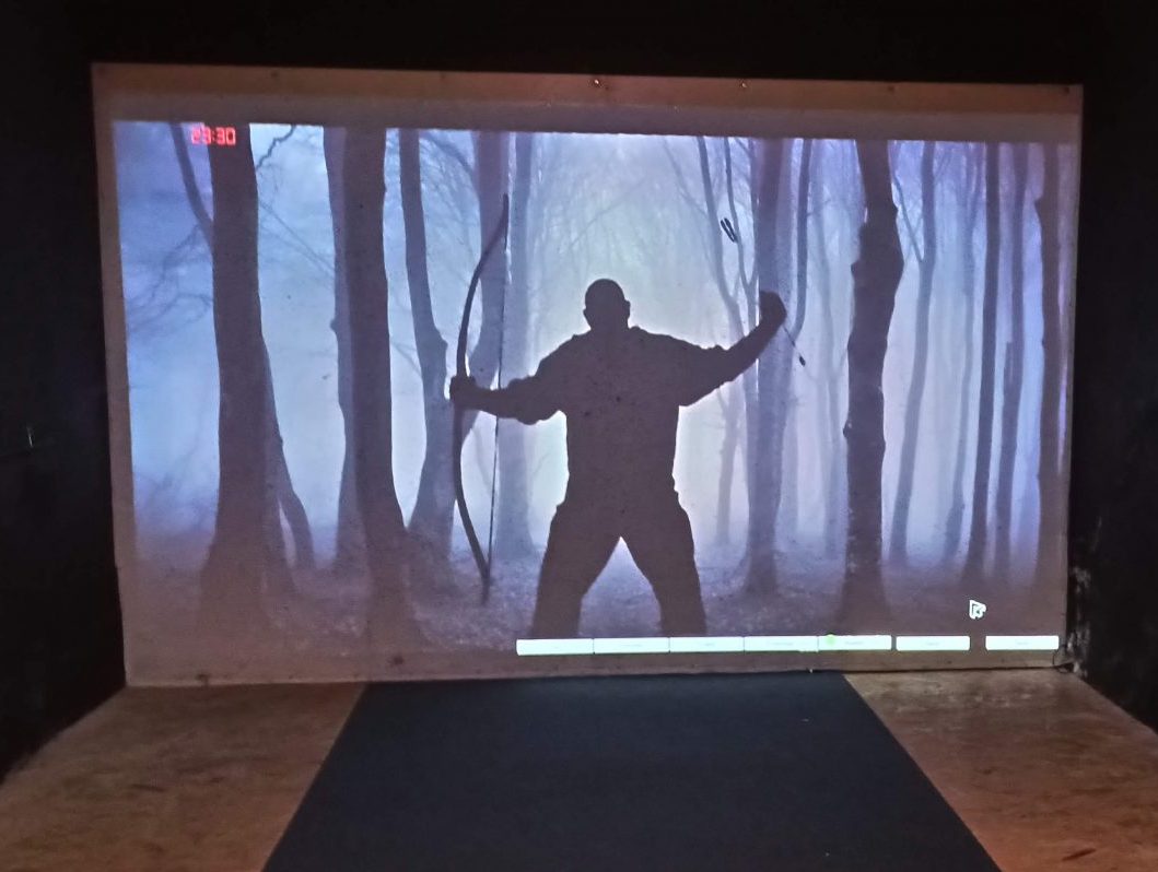 Doch wir hatten Glück: Cris von Archerytime war ebenfalls mit Camper eingetroffen um sein interaktives Schießkino zu testen, und neue Funktionen zu programmieren. Da er Betatester suchte, verbrachten wir den Abend bis spät in die Nacht im Schießkino.