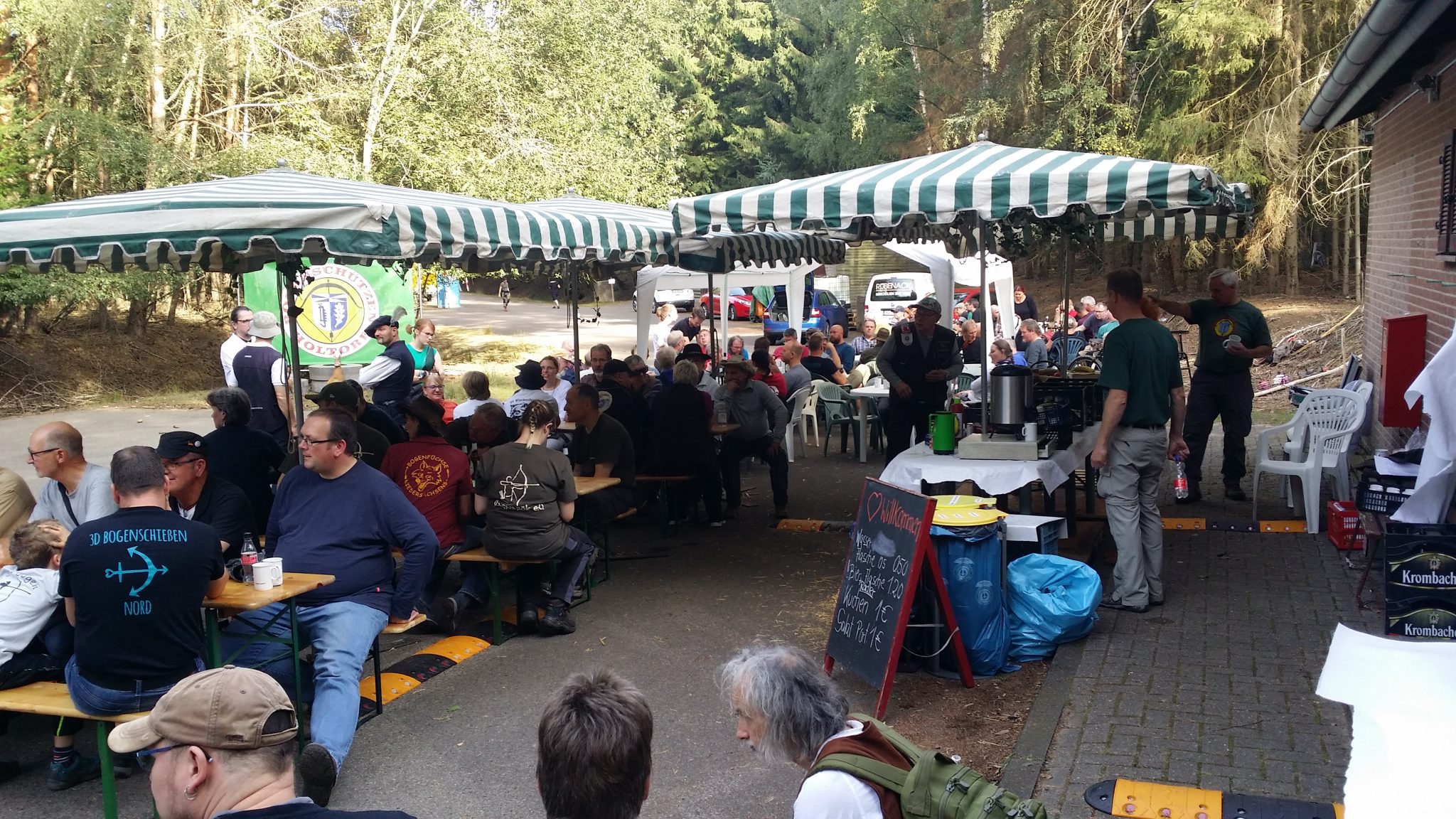 Viele Schützen sind mit der recht eigentümlichen morgendlichen Anmeldeprozedur nicht vertraut. Die Karten werden dort nicht ausgegeben sondern hängen an einem Pflock. Viele Schützen versäumen es nun, sich als anwesend zu melden. So haben die Jungs in der Orga nach Abgabe der Karten reichlich zu tun, um da den Durchblick zu behalten. Warum das nicht geändert wird, bleibt ein Rätsel.