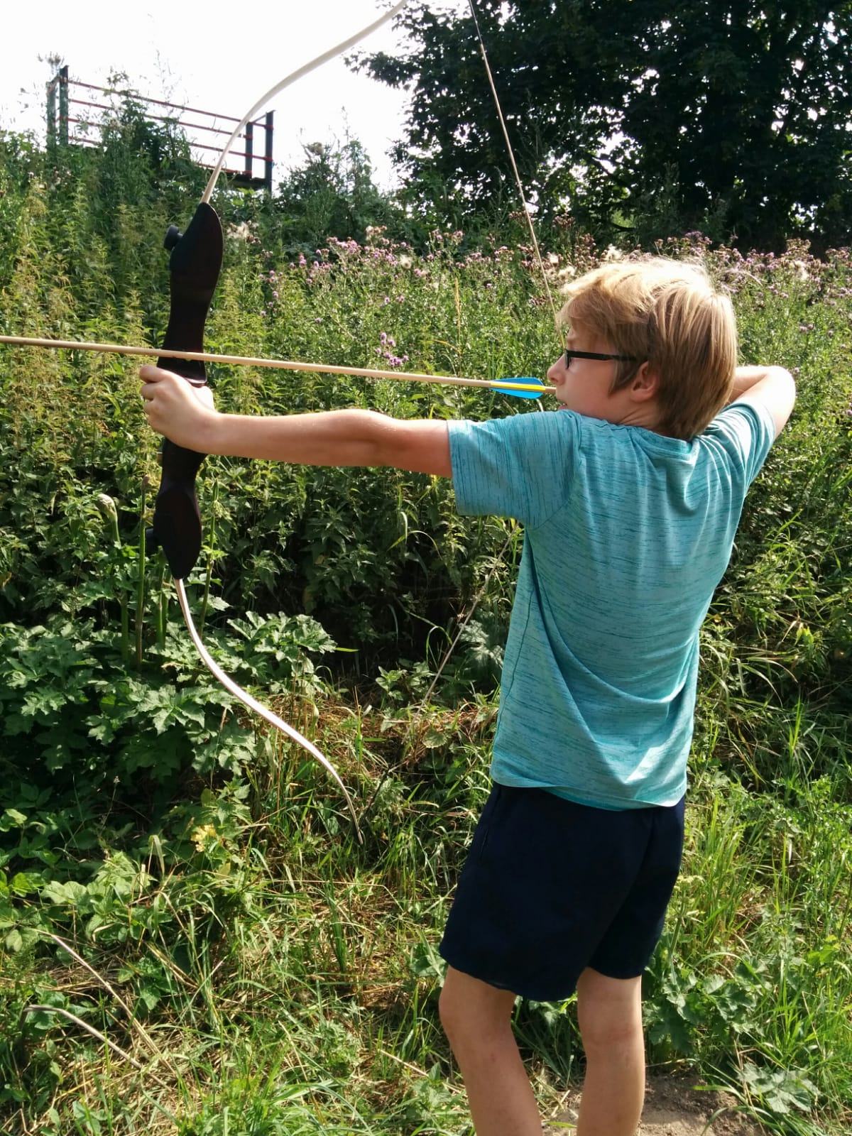 12 Kinder haben sich zum Bogenschießen am Freitag nachmittag angemeldet. Tina, Renè Vogler und ich haben die Bande betreut.