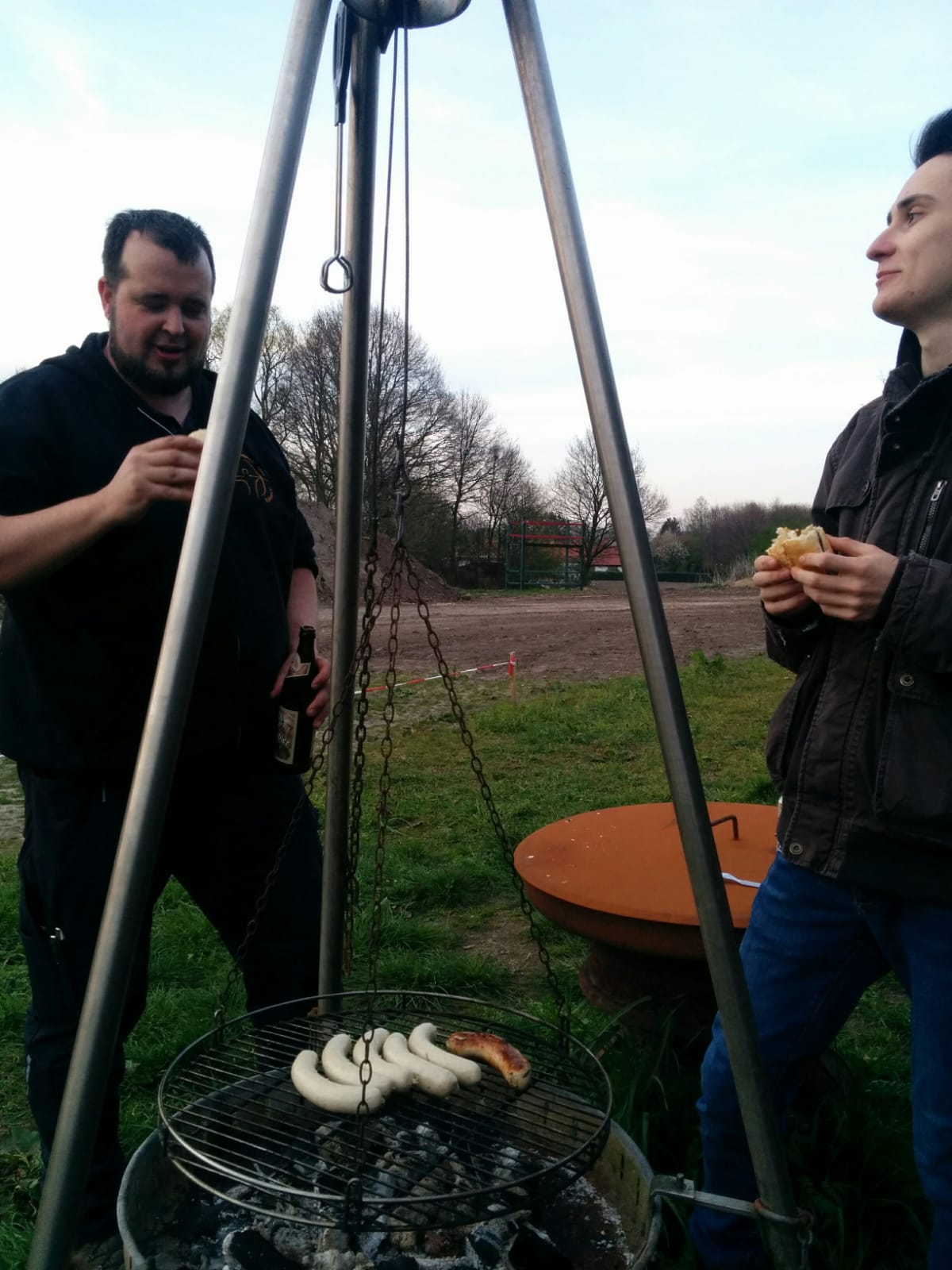 Tina hat Wurst,Brötchen und Holzkohle besorgt. Andrè hat noch ein paar lecker Bierchen gespendet.